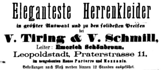 El miembro más destacado de estas generaciones tempranas fue Don Vitale Schmill, bisnieto de Simón y patriarca empresarial de la familia. En 1868, Vitale fundó en Constantinopla la firma V. Tiring & V. Schmill, una casa de alta costura para caballeros que se convirtió en la primera empresa comercial global de la familia. Con sucursales en Viena, Berlín y Esmirna (Izmir), y oficinas centrales en la calle Yüksek Kaldırım del distrito de Galata en Estambul, la tienda de Don Vitale ganó renombre en Europa y Oriente Medio por la calidad suprema de sus trajes y telas. Junto a su socio, Don Vittorio Tiring, inauguró lujosos grandes almacenes, destacando uno en El Cairo que llegó a ser el más grande de Egipto en su época. Entre la clientela de Vitale figuraban miembros de la familia del sultán otomano, la influyente familia bancaria Camondo (amigos cercanos de los Schmill) y numerosos nobles y empresarios de distintos imperios. El éxito de Don Vitale Schmill sentó un precedente de visión global, calidad y valores empresariales para sus descendientes.